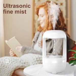 - Anti-Gravity Humidifier and Desk Decor: Diffuse water vapor to increase air humidity; Release essential oil for fragrant aroma and better air quality; Desk ornament with the fantastic, magical anti-gravity levitating water drops and light effect